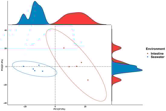 The raw paired-end sequences from each sample were acquired using the Illumina platform and subsequently imported into the QIIME2-2023.2 platform for analysis [36]. Firstly, raw sequences were demultiplexed into each group by DNA barcode, and primer and low-quality reads with an average quality score <20 were filtered by the QIIME2 demux command. Raw sequence data were demultiplexed and quality filtered using the q2 demux plugin followed by denoising with DADA2 [37]. The high-quality forward and reverse reads were then merged and correctly assigned to their respective samples using DNA barcodes [38]. Subsequently, the UCHIME plugin was employed for chimera detection and elimination, leading to the creation of a feature table for amplicon sequence variants (ASVs). Later, all ASVs were aligned by the qiime2-alignment function [39] and the phylogeny tree was constructed by q2-phylogeny function [40]. Taxonomic annotation was conducted by the qiime2-feature-classifier function [41] through the classify-sklearn naive Bayes taxonomy classifier against the Greengenes 13_8 99% OTUs reference sequences [42]. Metabolic functions were predicted by the “PICRUSt2” script under the Python 3 environment. The metagenome prediction result was later analyzed by “ggpicrust2” package in R [43]. The ko abundance was firstly converted to KEGG pathway abundance, and then the pathway differential abundance was analyzed using the ALDEx2 method. Finally, differential pathways between gut and surrounding seawater were selected and visualized.