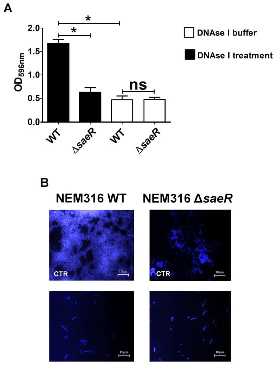 3.4. Absence of SaeR Is Associated with Lower eDNA Levels in the Biofilm Matrix