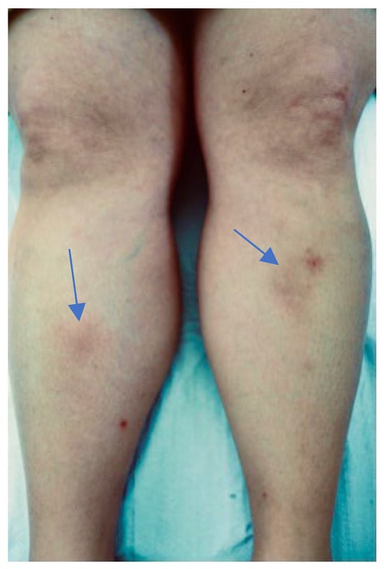 - Rosa Neto, N.S.; Gauditano, G.; Yoshinari, N.H. Chronic lymphomonocytic meningoencephalitis, oligoarthritis and erythema nodosum: Report of Baggio-Yoshinari syndrome of long and relapsing evolution. Rev. Bras. Reumatol. 2014, 54, 148–151. [Google Scholar] [CrossRef] [PubMed]