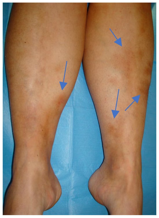 In 2016, she presented in Italy with headache, low-grade fever, and myoarthralgias in her shoulders and knees, and hips. Tests for autoimmune diseases, anti-nuclear antibodies (ANAs), and anti-extractable nuclear antigens (ENAs) were negative. Anti-Borrelia IgG and IgM by CLIA resulted negative. Taking the previous diagnosis of BYS, the patient was treated with ceftriaxone, minocycline, and hydroxychloroquine, according to the Yoshinari protocol, with the improvement of the clinical manifestations.