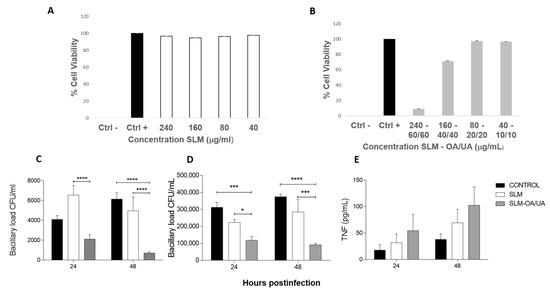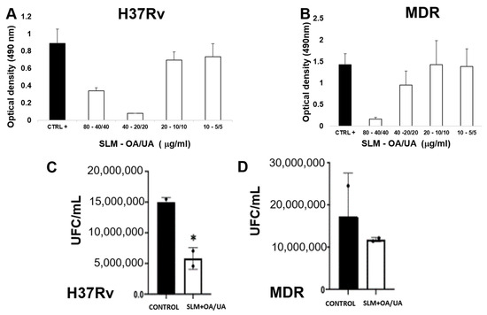 2.5. In Vitro Anti-Mycobacterial Activity of SLMs with UA-OA
