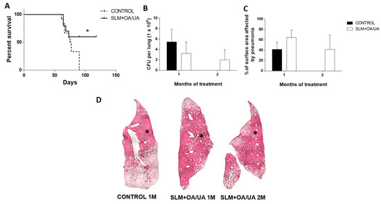 2.6. In Vivo Anti-Tuberculosis Activity of SLMs with UA and OA