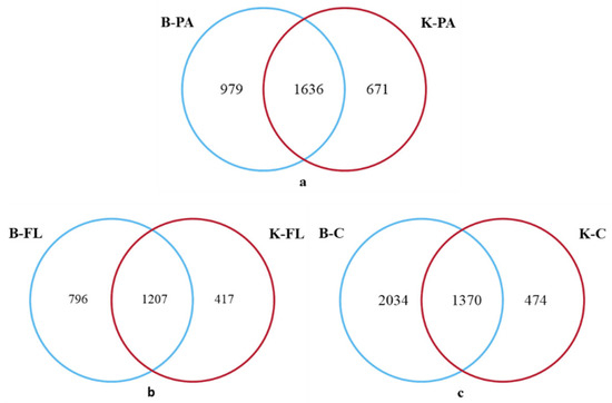 The raw data were processed by trimming and filtering to obtain clean sequences. Operational taxonomic units (OTUs) were clustered with 97% similarity cutoff using UPARSE (version 7.1, http://drive5.com/uparse/ accessed on 23 January 2024), and chimeric sequences were identified and removed using UCHIME (version 4.2) [21]. The phylogenetic affiliation of each 16S rRNA gene sequence was analyzed by Ribosomal Database Project (RDP) Classifier (http://rdp.cme.msu.edu/ accessed on 23 January 2024) against the silva (SSU132) 16S rRNA database using a confidence threshold of 70% [22].
