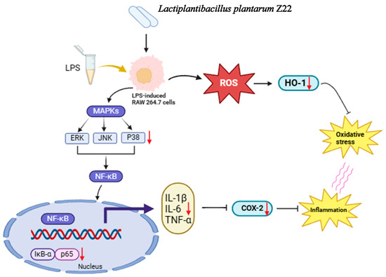Proposed molecular mechanisms underlying the inhibitory effect of L. plantarum Z22 in LPS-stimulated RAW264.7 cells.