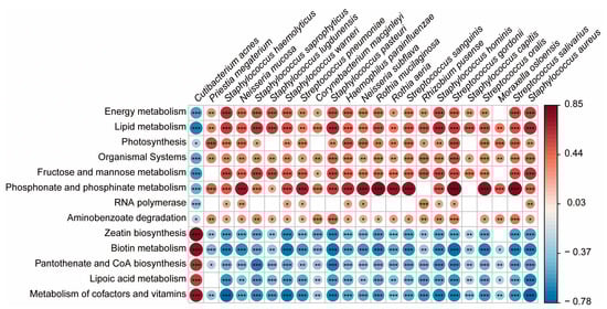 Functional profiles that showed positive correlations with C. acnes had no positive correlations with the 22 biomarkers of the older group; rather, most showed significant negative correlations. Additionally, C. acnes showed significant negative correlations with eight functional profiles, with lipid metabolism showing the strongest negative correlation (r = −0.677, FDR-adjusted p < 0.001). All 22 biomarkers of the older group showed positive correlations with this functional profile. These results suggest that decreased C. acnes dominance significantly impacts the microbial community’s functional capabilities.