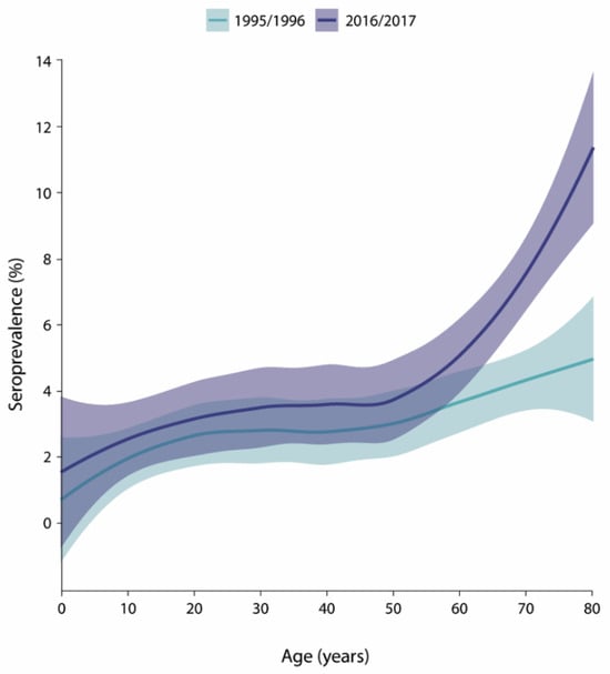 3.4. Seroprevalence Estimates in 2016/2017 and Trend Analysis