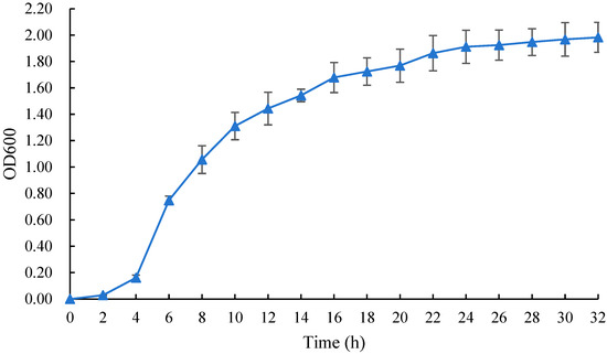 The determination method of antagonistic bacteria growth curve is as follows: inoculate the antagonistic bacteria activated into 50 mL of the NB medium; shake the culture at 28 °C and 180 r/min for 24 h to obtain seed solution; inoculate the seed solution with 1% inoculum size into the NB medium; and shake the culture at 28 °C and 180 r/min, sampling every 2 h to measure the OD600 nm value using a spectrophotometer, with the sterile NB medium as the control and 3 replicates for each treatment.