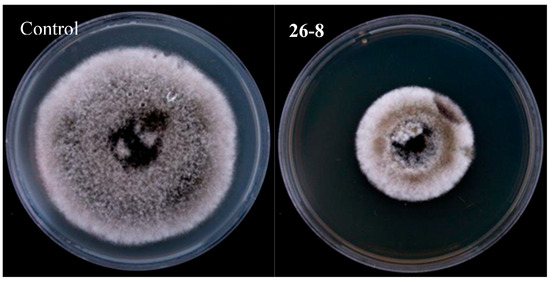 Inhibitory effect of strain 26-8 on hyphal growth of Alternaria alternata.