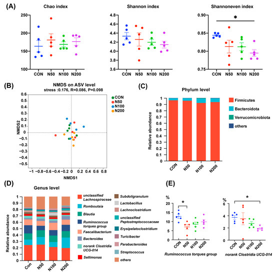 APA StyleWang, X., Xiao, C., Wu, S., Lin, Q., Lin, S., Liu, J., Ye, D., Wang, C., & Guo, P. (2024). Impacts of Nano-Composite of Copper and Carbon on Intestinal Luminal Micro-Ecosystem and Mucosal Homeostasis of Yellow-Feather Broilers. Microorganisms, 12(11), 2247. https://doi.org/10.3390/microorganisms12112247