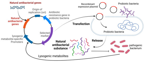 Schematic diagram of using probiotics to produce natural antibacterial substances.