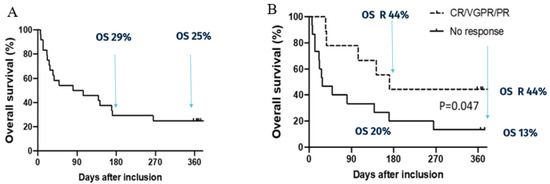 Patients’ response and outcomes after MaaT013 treatment in the HERACLES study based on Malard et al. [161] (A) Overall survival in HERACLES (B) Overall survival according to response to MaaT013 in HERACLES.