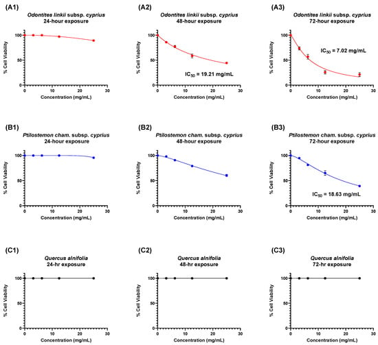 3.4. HepG2 Cell Viability Using Ethanolic Plant Extracts