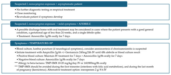 - Allerberger, F.; Huhulescu, S. Pregnancy related listeriosis: Treatment and control. Expert Rev. Anti Infect. Ther. 2015, 13, 395–403. [Google Scholar] [CrossRef] [PubMed]