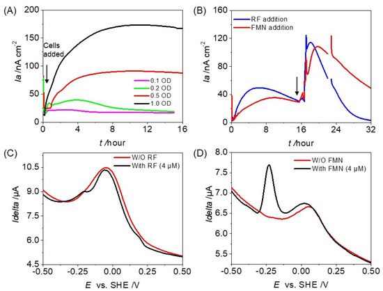 - Xu, S.; Jangir, Y.; El-Naggar, M. Disentangling the roles of free and cytochrome-bound flavins in extracellular electron transport from Shewanella oneidensis MR-1. Electrochim. Acta 2016, 198, 49–55. [Google Scholar] [CrossRef]