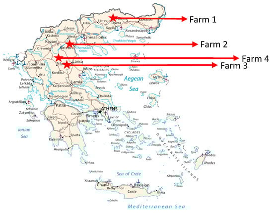 Localisation of the farms that supplied the indigenous Greek black pigs analyzed here.