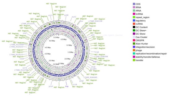Horizontal gene transfer regions (HGT regions) were searched using Alien Hunter []. CRISPR/Cas elements were searched using CRISPR/Cas Finder [].