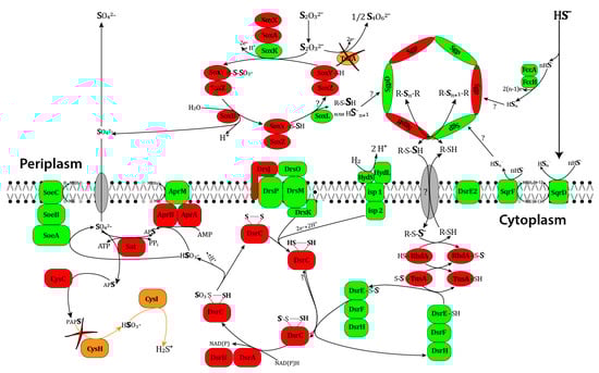 - Frigaard, N.U.; Dahl, C. Sulfur metabolism in phototrophic sulfur bacteria. Adv. Microb. Physiol. 2009, 54, 103–200. [Google Scholar] [PubMed]