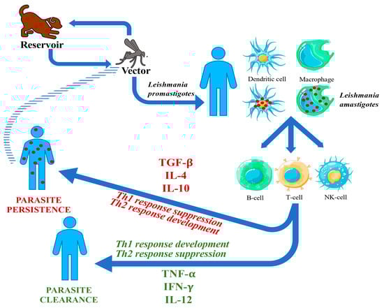 - Elmahallawy, E.K.; Alkhaldi, A.A.M.; Saleh, A.A. Host Immune Response against Leishmaniasis and Parasite Persistence Strategies: A Review and Assessment of Recent Research. Biomed. Pharmacother. 2021, 139, 111671. [Google Scholar] [CrossRef] [PubMed]