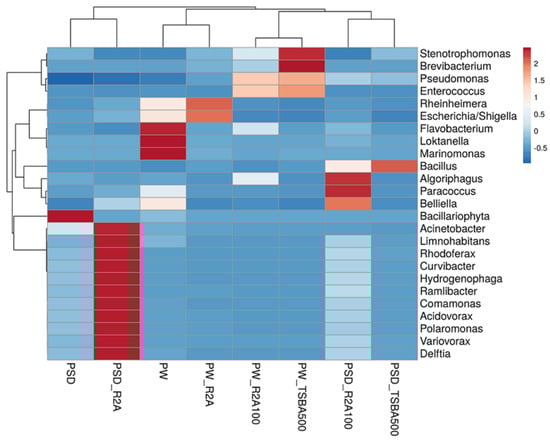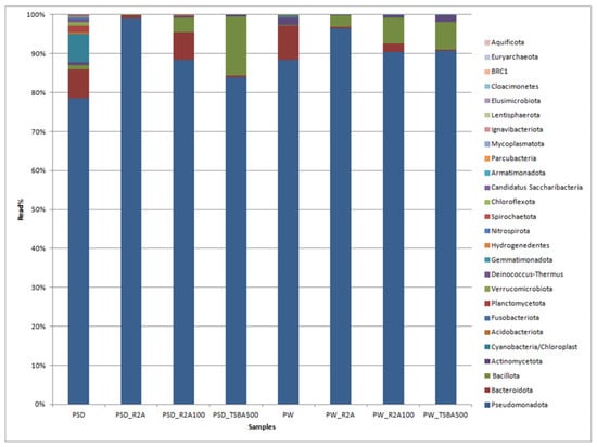 All data were submitted to the NCBI Sequence Read Archive (SRA) under the following accession numbers: SRR11354751 (PW)-SRR11354747 (PSD); SRR11354746 (PSD_R2A); SRR11354745 (PSD_R2A100); SRR11354744 (PSD_TSBA500); SRR11354750 (PW_R2A) SRR11354749 (PW_R2A100); and SRR11354748 (PW_TSBA500).