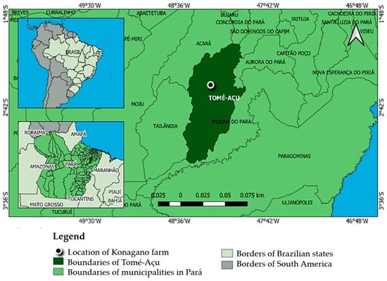 Location map of Konagano farm in Tomé-Açu, Pará, Brazil.