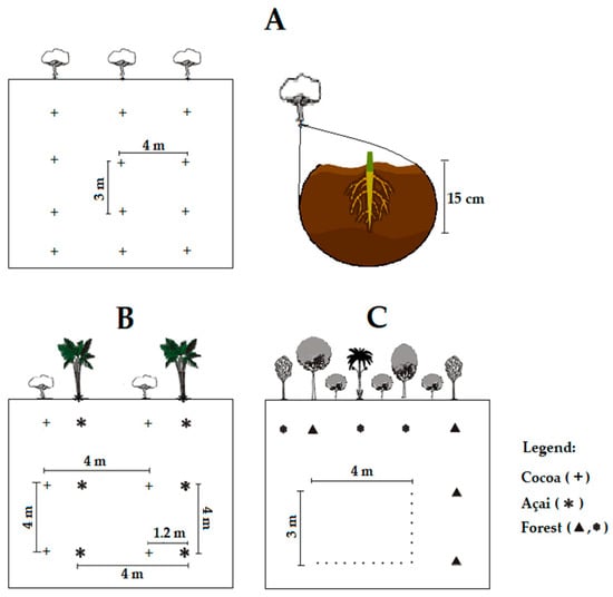 Although cocoa and açai in the field are largely cultivated in monoculture systems (MS), alternative systems, such as the agroforestry systems (AFS), are attracting attention as cocoa-açai intercropping is expanding in the state of Pará. The AFS is a sustainable system that proposes the combined use of different crops in the same area as a forest ecosystem. This intercropping system optimizes production as different crops are planted at the same time, which reduces deforestation. In addition, AFS advantages also include social benefits for family farmers that can enhance household income-producing cocoa and açai in small farm areas [,,,].