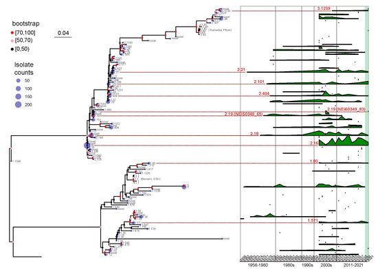 2.6. Phylogenetic Analysis and Identifying Epidemiological Patterns of fHbp Allelic Variants