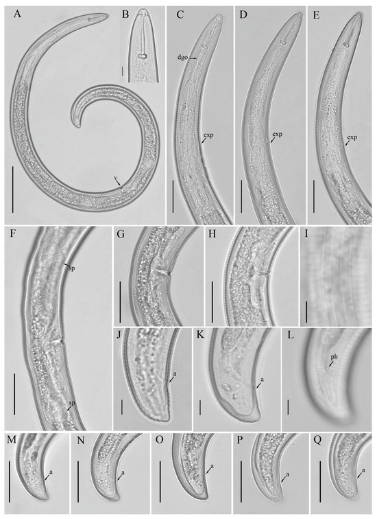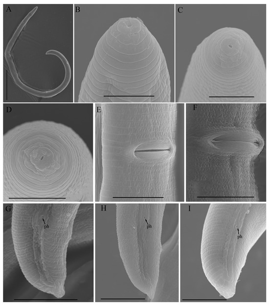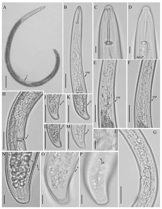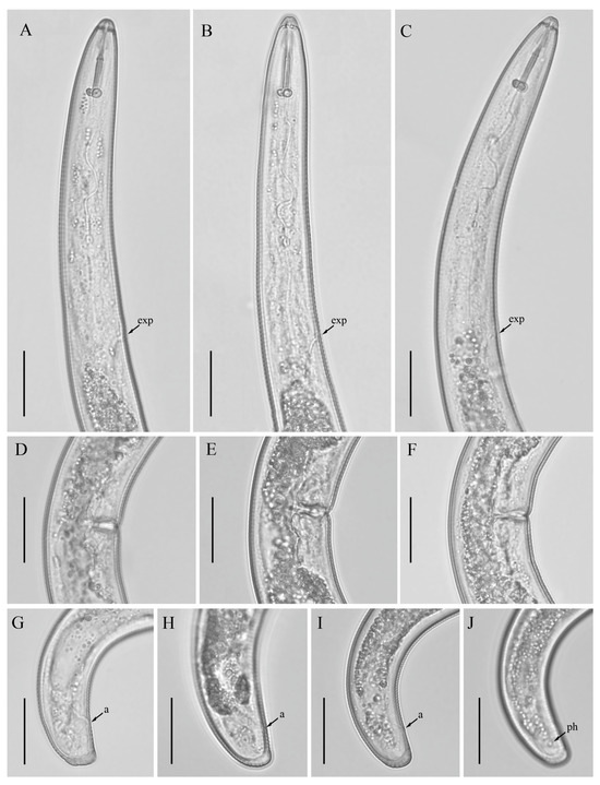 - Siddiqi, M.R. The unusual position of the phasmids in Coslenchus costatus (de Man, 1921) gen. n., comb. n. and other Tylenchidae (Nematoda: Tylenchida). Nematologica 1978, 24, 449–455. [Google Scholar] [CrossRef]