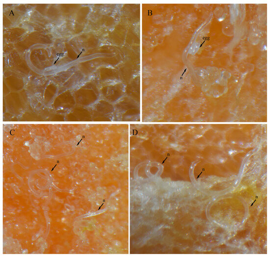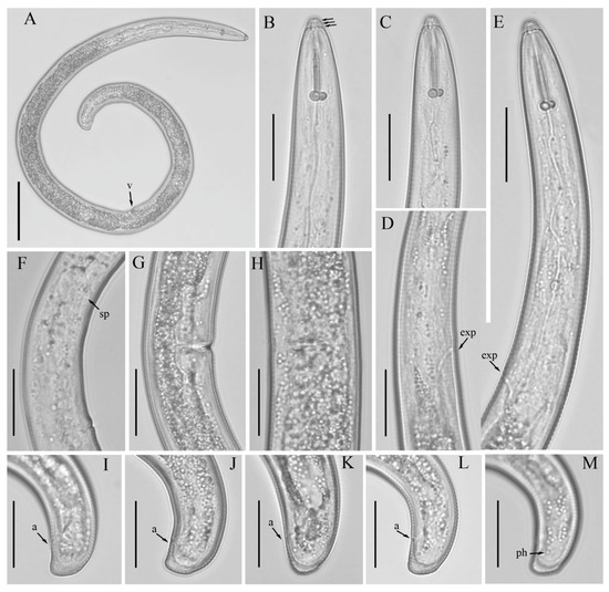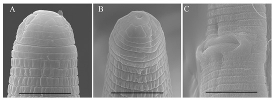 - Siddiqi, M.R. Tylenchida: Parasites of Plants and Insects, 2nd ed.; CAB International: Wallingford, UK, 2000. [Google Scholar]