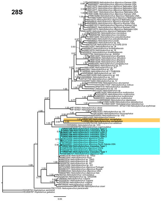3.5. Phylogenetic Relationships of Detected Species with Other Helicotylenchus Species
