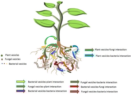 Figure 3 illustrates the diverse interactions potentially facilitated by the extracellular vesicles of the host plant and its microbiota.