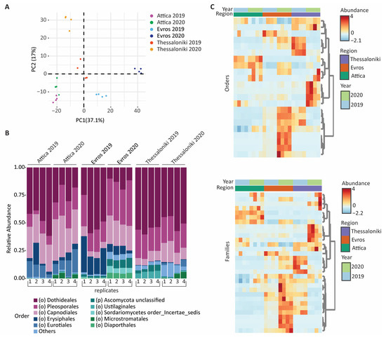 - Taylor, M.W.; Tsai, P.; Anfang, N.; Ross, H.A.; Goddard, M.R. Pyrosequencing Reveals Regional Differences in Fruit-Associated Fungal Communities. Environ. Microbiol. 2014, 16, 2848–2858. [Google Scholar] [CrossRef]