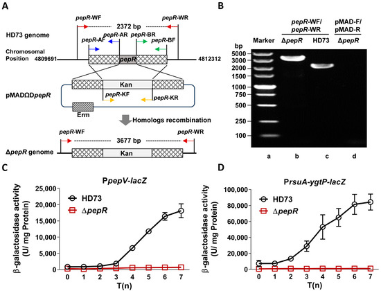 | ∆pepR | HD73 mutant, pepR gene was deleted by homologs recombination | This study |