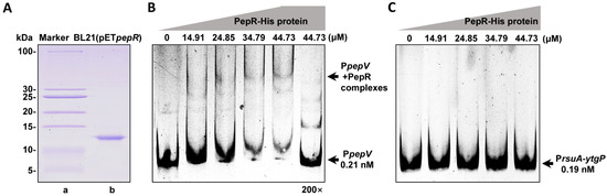 | pETpepR-F | CGGGATCCGTTGAAACCTACAACTACTCG | BamHI |