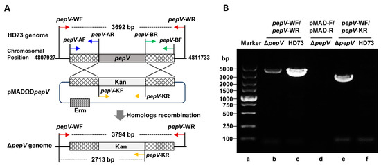 | ∆pepV | HD73 mutant, pepV gene was deleted by homologs recombination | This study |
