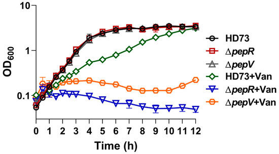 3.5. ΔpepR and ΔpepV Mutants Are More Sensitive to Vancomycin Than HD73