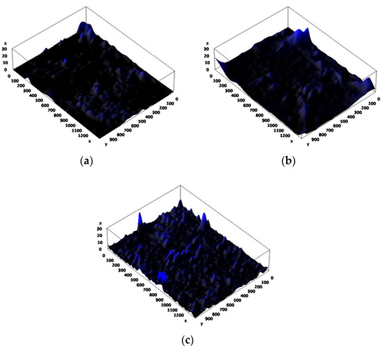 Figure 8a–c show CLSM images of the DAPI-stained bacterial anode at a magnification of 10×, which reveal the average height of the biofilm pillars to be 14, 21, and 27 μm for the bare anode, the kaolin anode, and the composite kaolin–graphite nanoparticle anode, respectively. We assume that adding the kaolin and the kaolin and graphite nanoparticles led to a significantly higher degree of biofilm formation compared with the bare anode. These results show that the highest electrochemical redox activity of the MFC equipped with the modified kaolin–graphite anode (