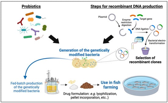 In Nile tilapia, recombinant probiotics belonging to the Lactococcus and Bacillus genus have been employed. For instance, L. lactis has been used to express epitopes from S. agalactiae, increasing its survival in challenge assays after the oral administration of this probiotic [].