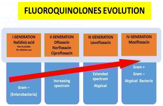 - Mah, F.S. Fourth-generation fluoroquinolones: New topical agents in the war on ocular bacterial infections. Curr. Opin. Ophthalmol. 2004, 15, 316–320. [Google Scholar] [CrossRef] [PubMed]