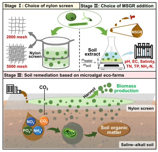 - Pei, H.; Yu, Z. Microalgae: A revolution for salt-affected soil remediation. Trends Biotechnol. 2023, 41, 147–149. [Google Scholar] [CrossRef] [PubMed]