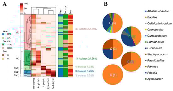 Salomón VM, Hero JS, Morales AH, Pisa JH, Maldonado LM, Vera N, Madrid RE, Romero CM. Microbiological Diversity and Associated Enzymatic Activities in Honey and Pollen from Stingless Bees from Northern Argentina. Microorganisms. 2024; 12(4):711. https://doi.org/10.3390/microorganisms12040711