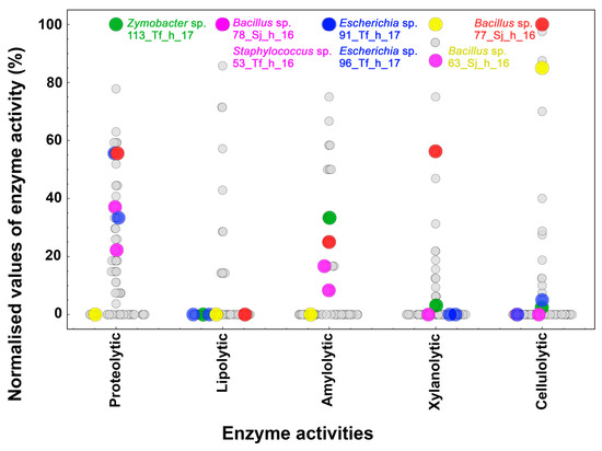 2.6. Semiquantitative Determination of Enzymatic Activities