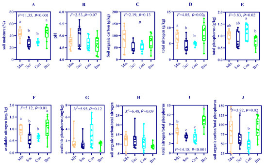 - Wan, X.; Huang, Z.; He, Z.; Yu, Z.; Wang, M.; Davis, M.R.; Yang, Y. Soil C:N ratio is the major determinant of soil microbial community structure in subtropical coniferous and broadleaf forest plantations. Plant Soil 2014, 387, 103–116. [Google Scholar] [CrossRef]