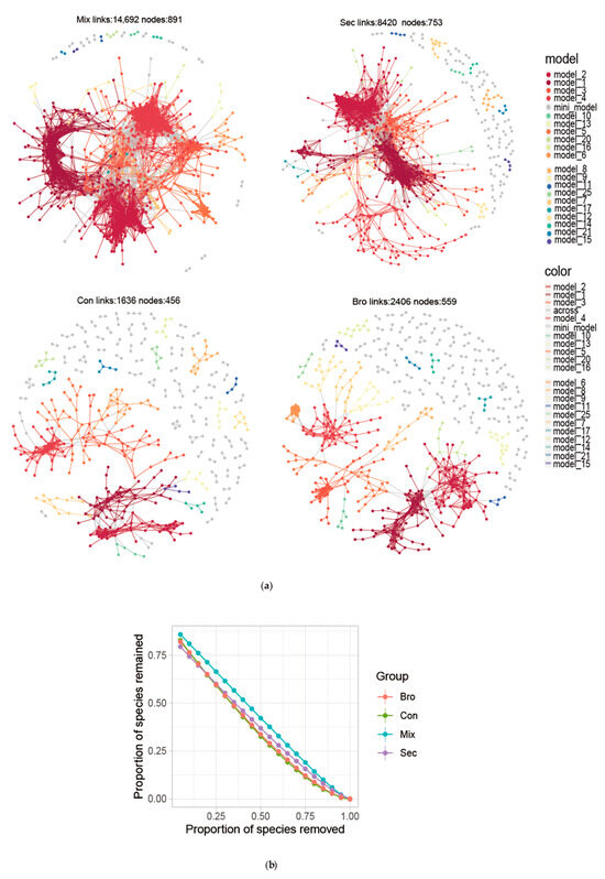 - Barberán, A.; Bates, S.T.; Casamayor, E.O.; Fierer, N. Using network analysis to explore co-occurrence patterns in soil microbial communities. ISME J. 2012, 6, 343–351. [Google Scholar] [CrossRef] [PubMed]