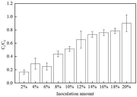 The inoculation amount of S. oneidensis MR-1 directly influences the reduction process of Cr(VI). In relative terms, a higher concentration of S. oneidensis MR-1 promotes the reduction process of Cr(VI). Figure 1 illustrates that when the inoculation amount is low (<10%), its impact on Cr(VI) reduction is limited. However, as the concentration exceeded 10%, an increase in S. oneidensis MR-1 led to a gradual enhancement in its ability to reduce Cr(VI). Notably, when increasing the inoculation amount from 18% to 20%, a significant improvement in the Cr(VI) reduction rate was observed for 20% S. oneidensis MR-1 (referred to as M2), which served as our research object while using 10% S. oneidensis MR-1 as our benchmark group (referred to as M1) for a clearer demonstration.