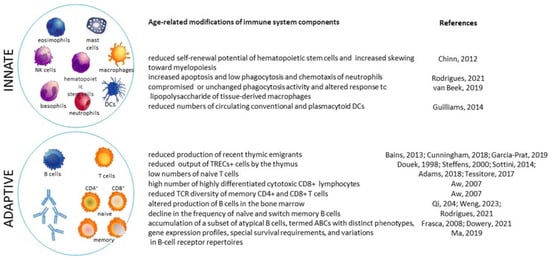 Table 1 summarizes the principal age-related modifications of the innate and adaptive immune system occurring in age-related infectious diseases.