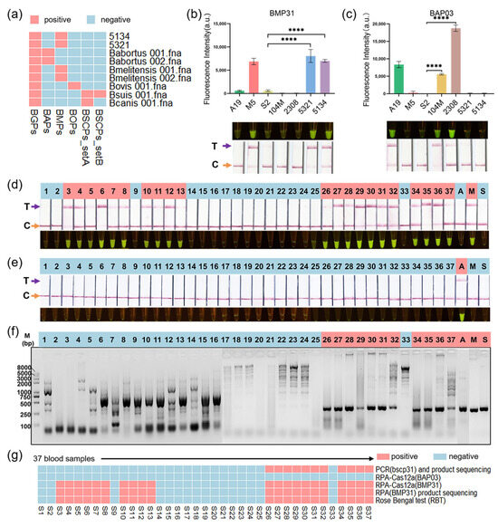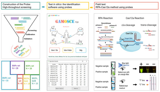 - Dang, S.; Sui, H.; Zhang, S.; Wu, D.; Chen, Z.; Zhai, J.; Bai, M. CRISPR-Cas12a test strip (CRISPR/CAST) package: In-situ detection of Brucella from infected livestock. BMC Vet. Res. 2023, 19, 202. [Google Scholar] [CrossRef] [PubMed]