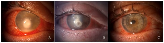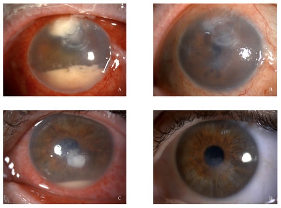 - Chatterjee, S.; Agrawal, D. Recurrence of Infection in Corneal Grafts After Therapeutic Penetrating Keratoplasty for Microbial Keratitis. Cornea 2020, 39, 39–44. [Google Scholar] [CrossRef]