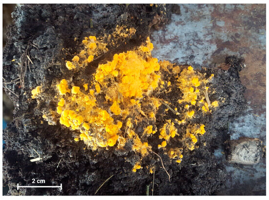 Notably, between 2020 and 2021, there was a significant rise in calf mortality in tropical areas of Ecuador where PKC is commonly used as animal feed, prompting an industry-wide alert regarding mycotoxin presence. However, the root cause of these deaths was never thoroughly investigated. Also, in the same year, cattle ranchers in Ecuador raised concerns about a yellow-orange fungal intrusion in PKC storage facilities (as shown in Figure 1), suggesting that this growth indicates the presence of pathogenic or mycotoxin-producing fungi potentially harmful to their cattle. As a result, they requested a thorough investigation into the matter.
