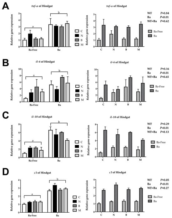 3.3. Expression of Posterior Intestine Immune-Related Genes