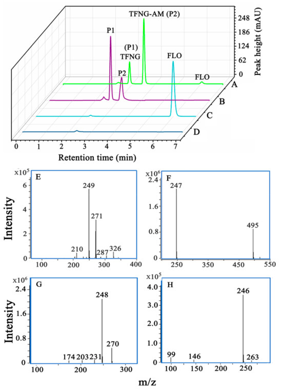FLO and TFNG were obtained from Hubei Nuona Technology Co. (Wuhan, China) and Sigma-Aldrich (St. Louis, MI, USA), respectively. FLO had a purity of 95% and TFNG had a purity of 99%. TFNG-AM (purity 99%) was synthesized following the protocol laid out by Yang et al. [22]. A gradient-grade acetonitrile for high-performance liquid chromatography (HPLC) analysis was supplied by Honeywell (Burdick and Jackson, Shanghai, China). Sinopharm Chemical Reagent Co. (Shanghai, China) supplied all additional reagents of analytical grade.